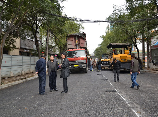 下圖為:咸陽市城建局韓保鋒局長、咸陽市市政工程管理處楊偉生主任、咸陽市建筑安裝工程總公司趙拓總經(jīng)理等在樂育路施工現(xiàn)場檢查、指導(dǎo)工作。
